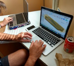 Pour pouvoir réaliser ce travail, ils ont besoin de concevoir un moule qui puisse être utilisé avec la machine d’injection de Precious Plastic. Le premier pas consiste donc à modéliser le boitier à l’ordinateur en utilisant le software CAD. Ensuite, ils peuvent développer le design à travers des techniques rapides de prototypage telles que l’impression 3D, avant de créer le moule définitif en métal.