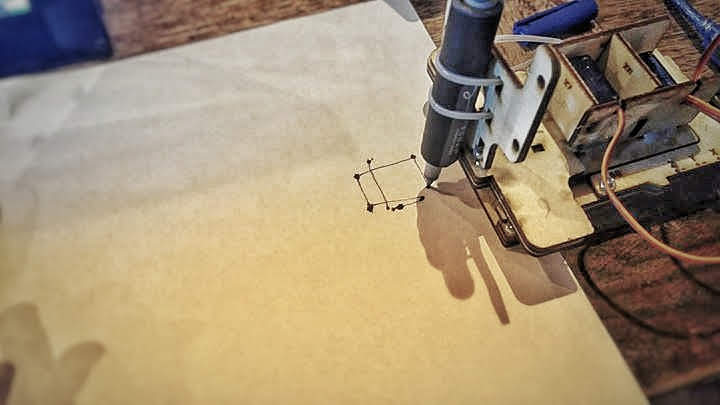 Il s’agit une introduction débranchée à la mécanique propre aux machines à commandes numériques (ex. imprimante 3D, fraiseuse numérique, découpeuse laser). Le plotter permet de déplacer un stylo (ou feutre,