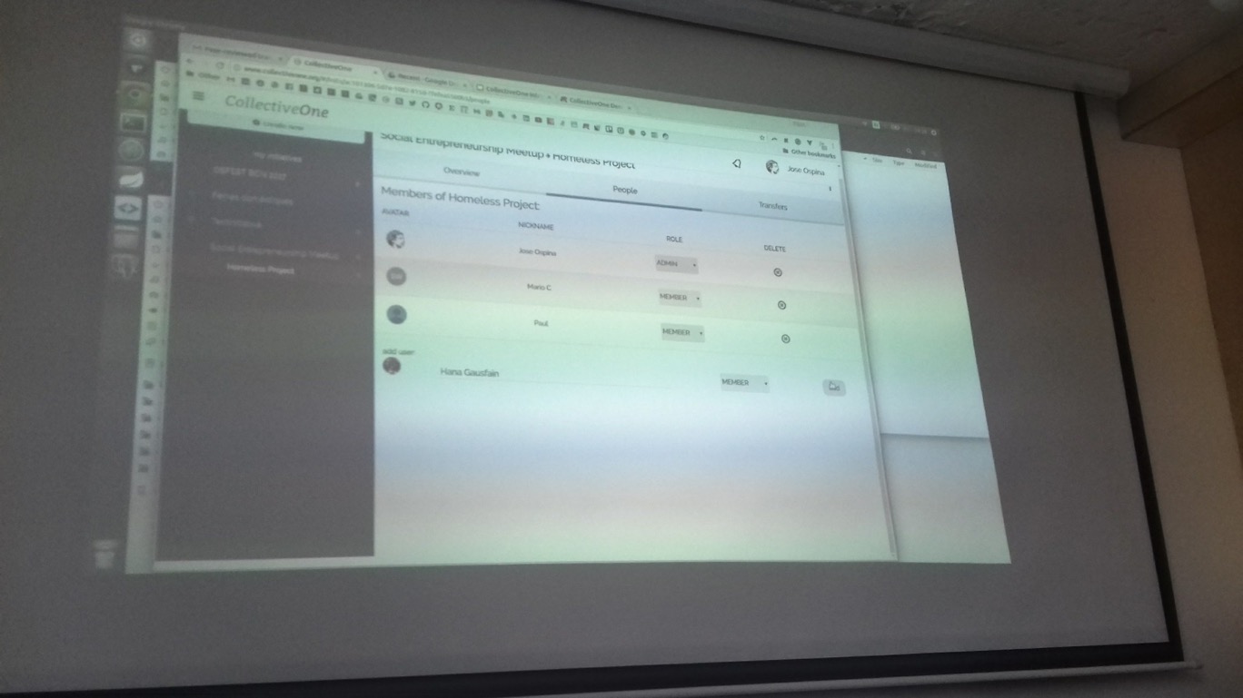 Par la suite la nouvelle plateforme de collaboration www.collectiveone.org a était présenter par Juan (le cofondateur de cette société), cette plateforme ouvre des nouvelles perspectives de collaboration permettant une transparence plus pousse des projets collaboratifs, et en introduisant une nouvelle méthode de rémunération des salaries et collaborateur outre que purement pécuniaire – en particulier, par le bai d’une monnaie numérique que la société a nommée “Tokens”. Forte de cette expérience, Digijeunes a l’attention de continuer a développé c’est liens avec la communauté des entrepreneurs sociaux dans le but de créer des liens plus étroits avec c’est partenaires Europeens.