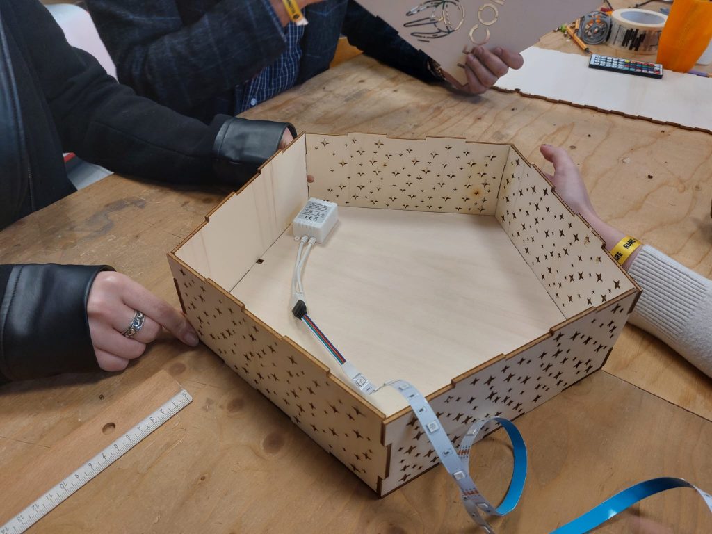 ➡ The main activity consisted in taking part in a hands-on workshop on building a lightbox from scratch. It also offered young people aged 16 to 25 the opportunity to engage discover a new profession and the daily life of the people working in fablabs.