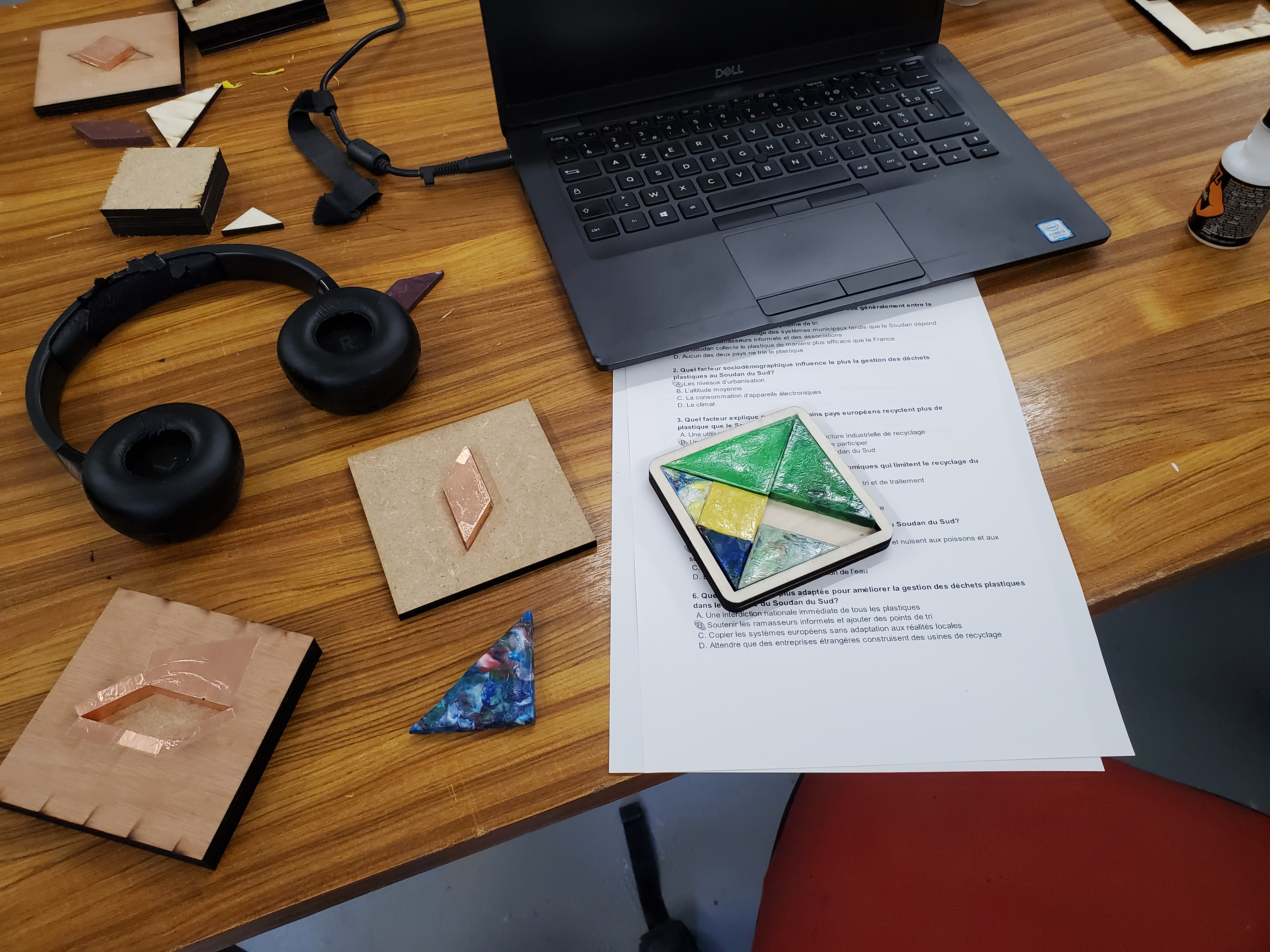 Le mois dernier, nous avons eu le plaisir d’accueillir un groupe de jeunes et d’expérimenter ensemble autour du recyclage « do it yourself » du plastique. Après une introduction à la problématique des déchets plastiques dans le monde, nous avons réalisé plusieurs expériences pour identifier différents types de plastiques. Nous avons ensuite modélisé des moules et utilisé une presse à panini pour créer des pièces originales, qui ont finalement servi à composer un jeu de tangram.